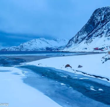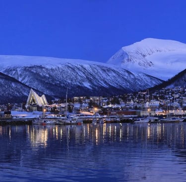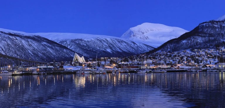Light fades slowly over the fjord. The mountains darken, but the sky refuses to follow. Instead, it settles into a quiet shade of blue that seems to hold the entire city in suspension.