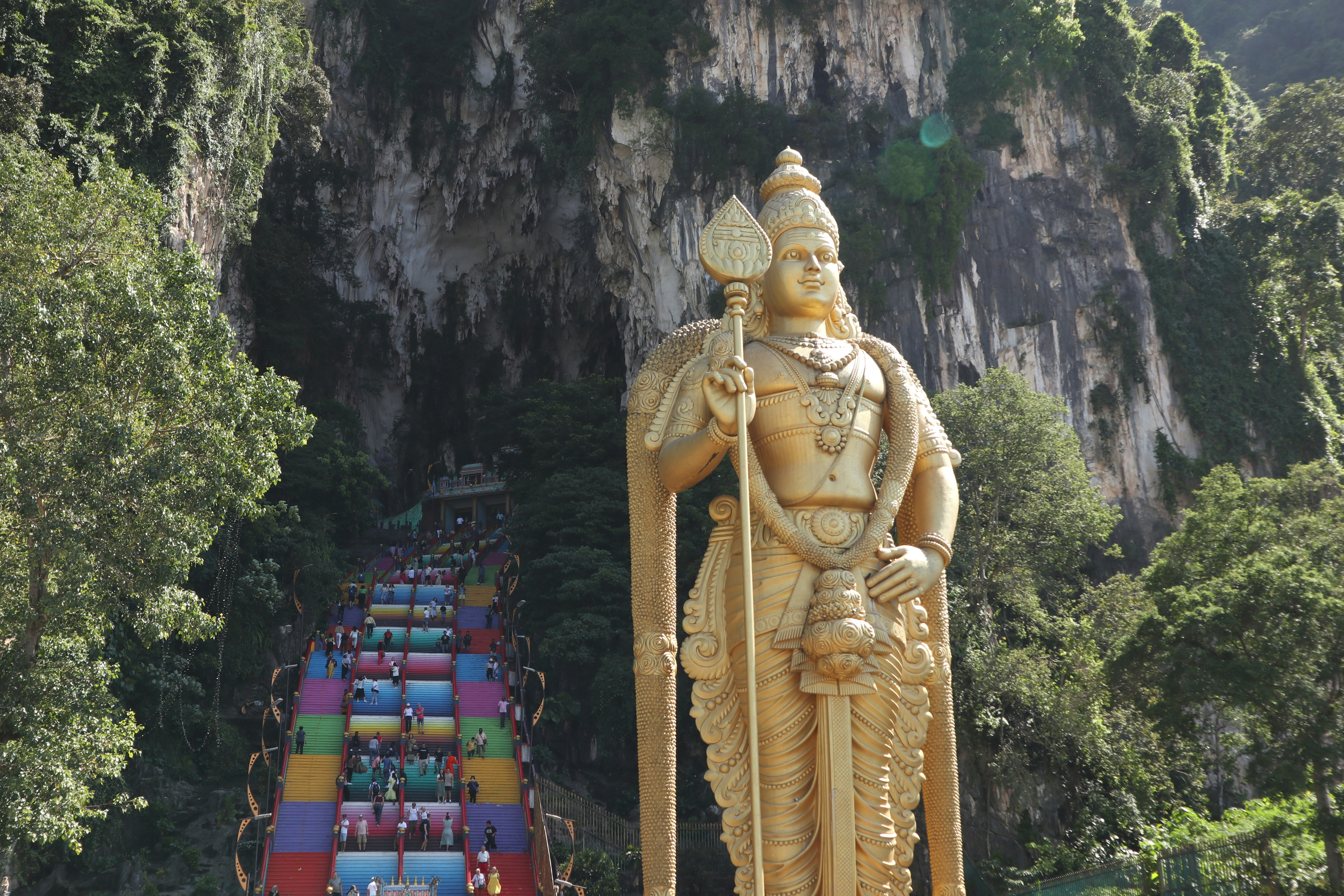 Climbing the staircase is the central action of Batu Caves.